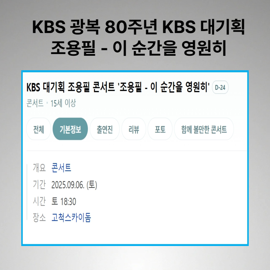 - 공연명: 광복 80주년 KBS 대기획 – 이 순간을 영원히 조용필